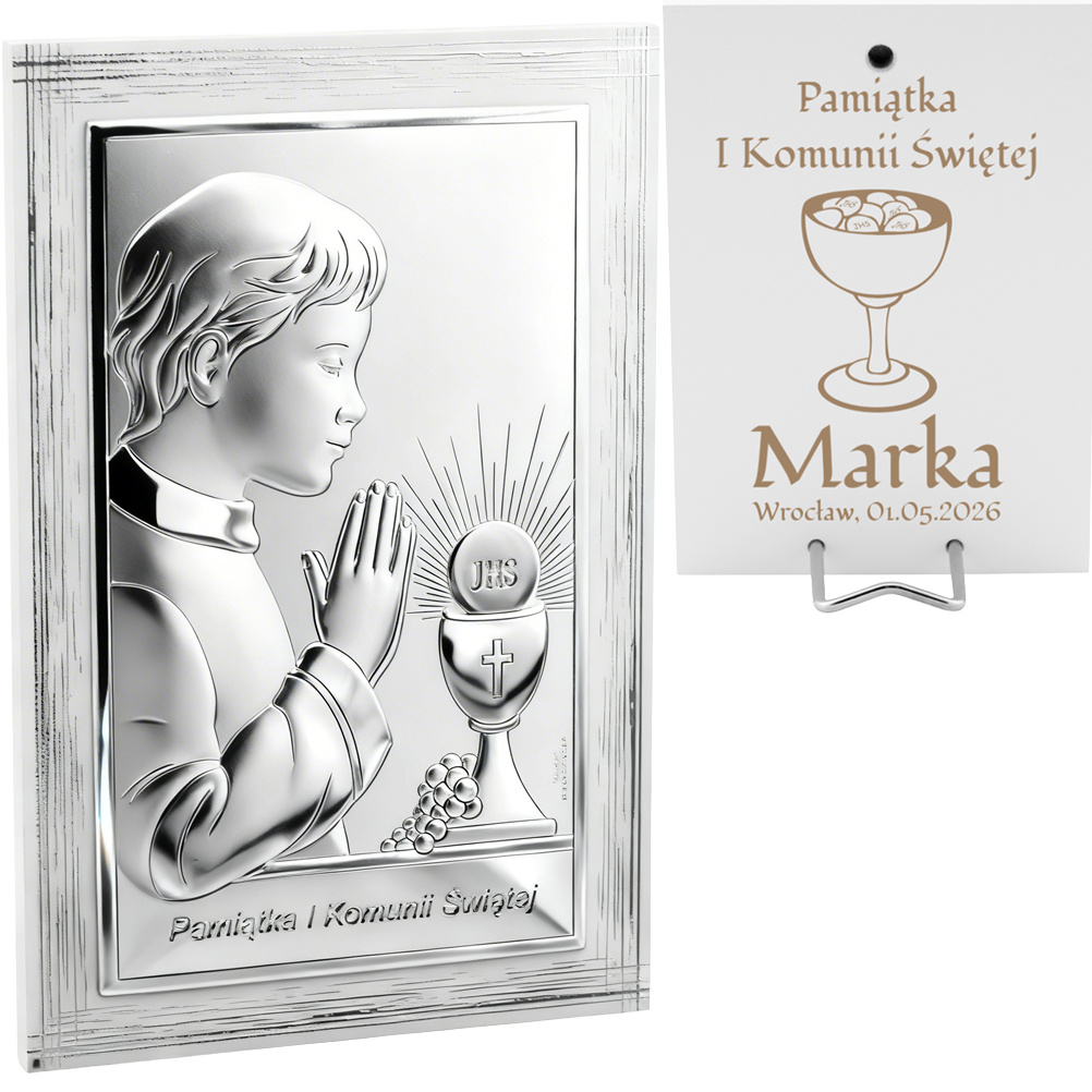 Obrazek Srebrny Chłopiec Pamiątka na I Komunię Św.