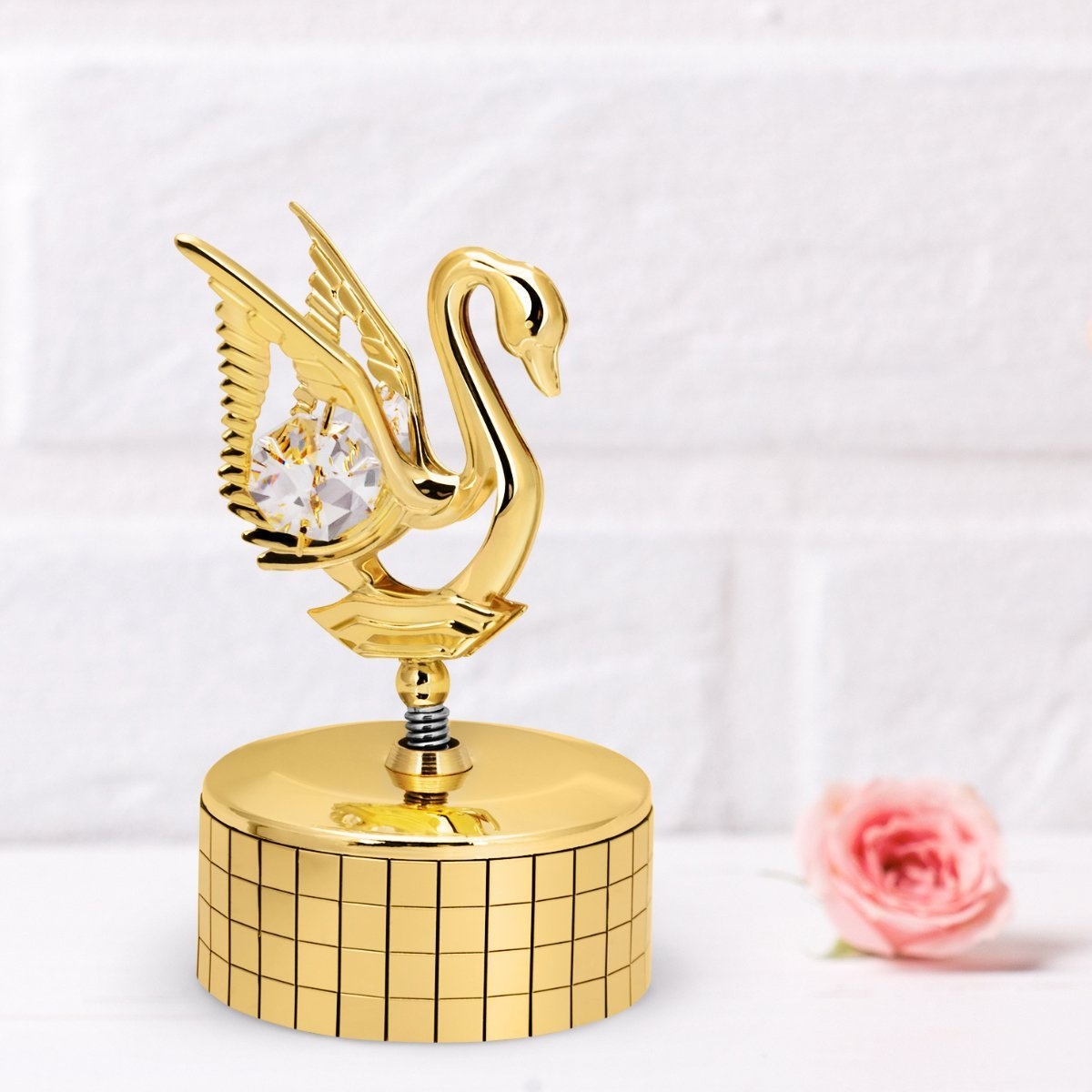 Pozytywka Pozłacany Łabędź Swarovski Prezent na Chrzest