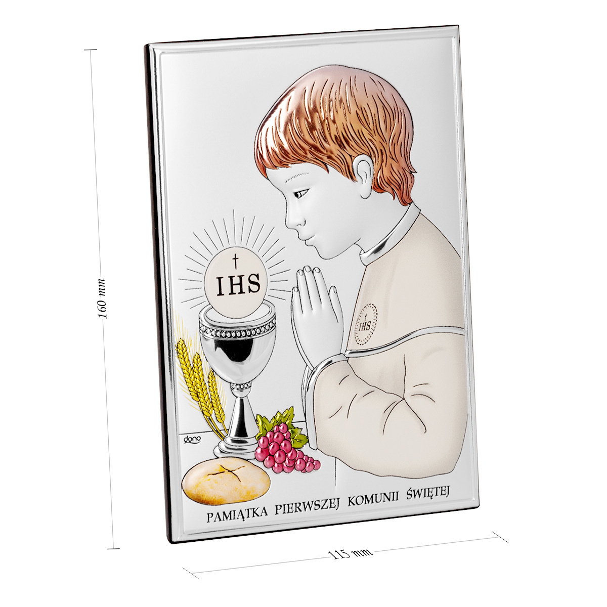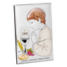 Szukasz wyjątkowego prezentu dla dziecka komunijnego? Pięknym upominkiem i zarazem pamiątką tej niezwykłej uroczystości jest posrebrzany obrazek. Obrazek przedstawia dziecko przystępujące do I Komunii Świętej oraz symbole tego sakramentu: kielich, chleb, Hostię, winogrona, kłosy zboża.