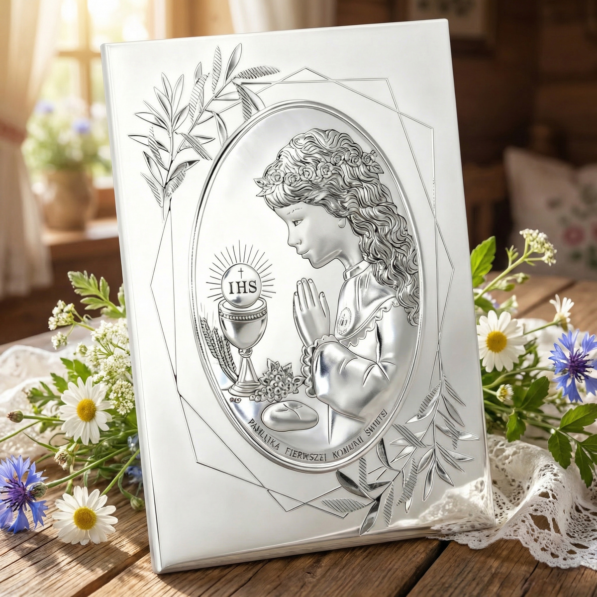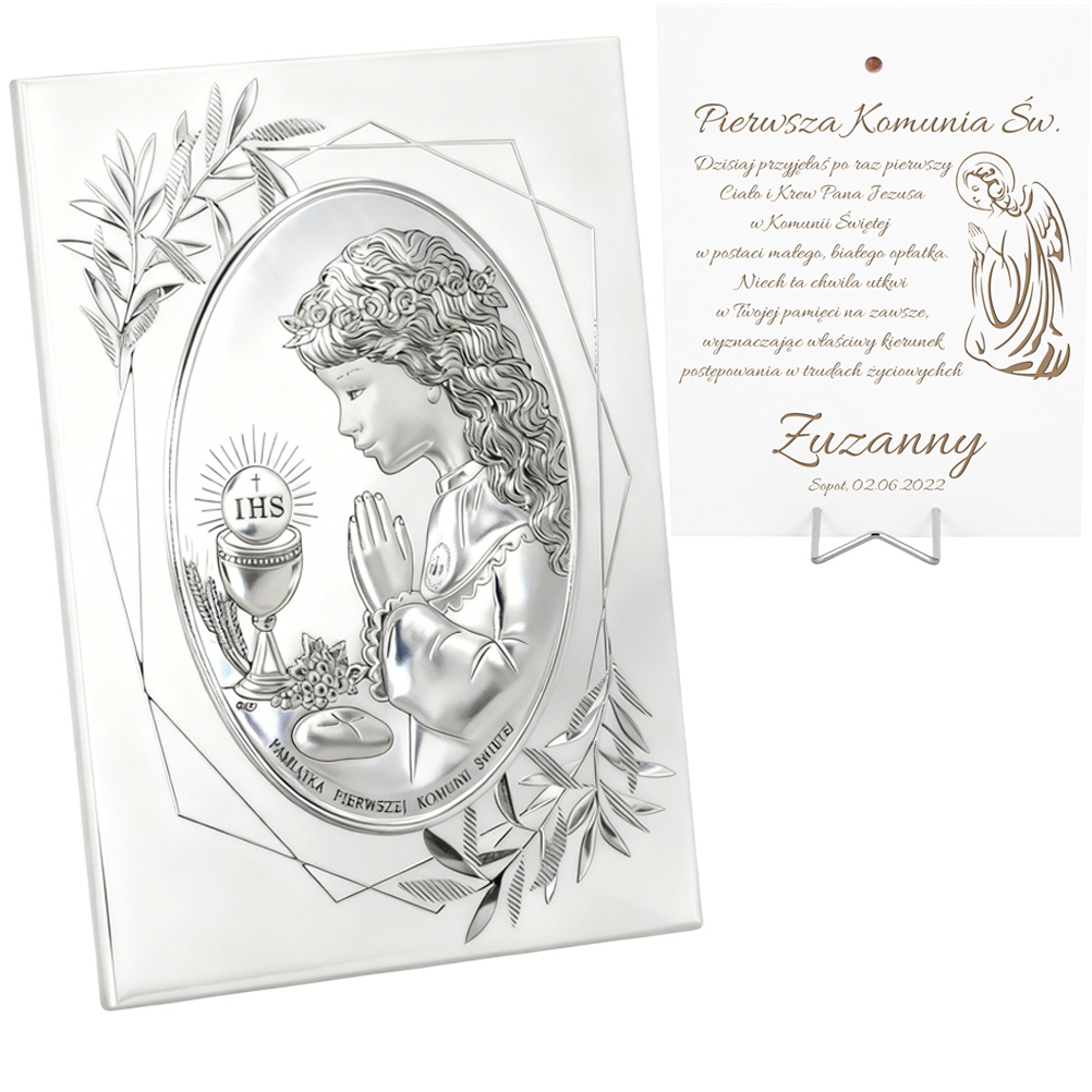 Wyprodukowany i zaprojektowany we Włoszech obrazek łączy ze sobą tradycję i nowoczesność. Obrazek jako pamiątka pierwszej komunii to sprawdzony i tradycyjny pomysł, ale obrazek wykonany z surowca PVD to innowacyjne rozwiązanie. Nowoczesna technologia pokrywania metalu czystym srebrem daje unikatowy i niepowtarzalny efekt. Obrazek jeszcze bardziej odbija światło. Podkreśla to szlachetność srebra. Całość jest również odporniejsza na zarysowania i śniedzenie.