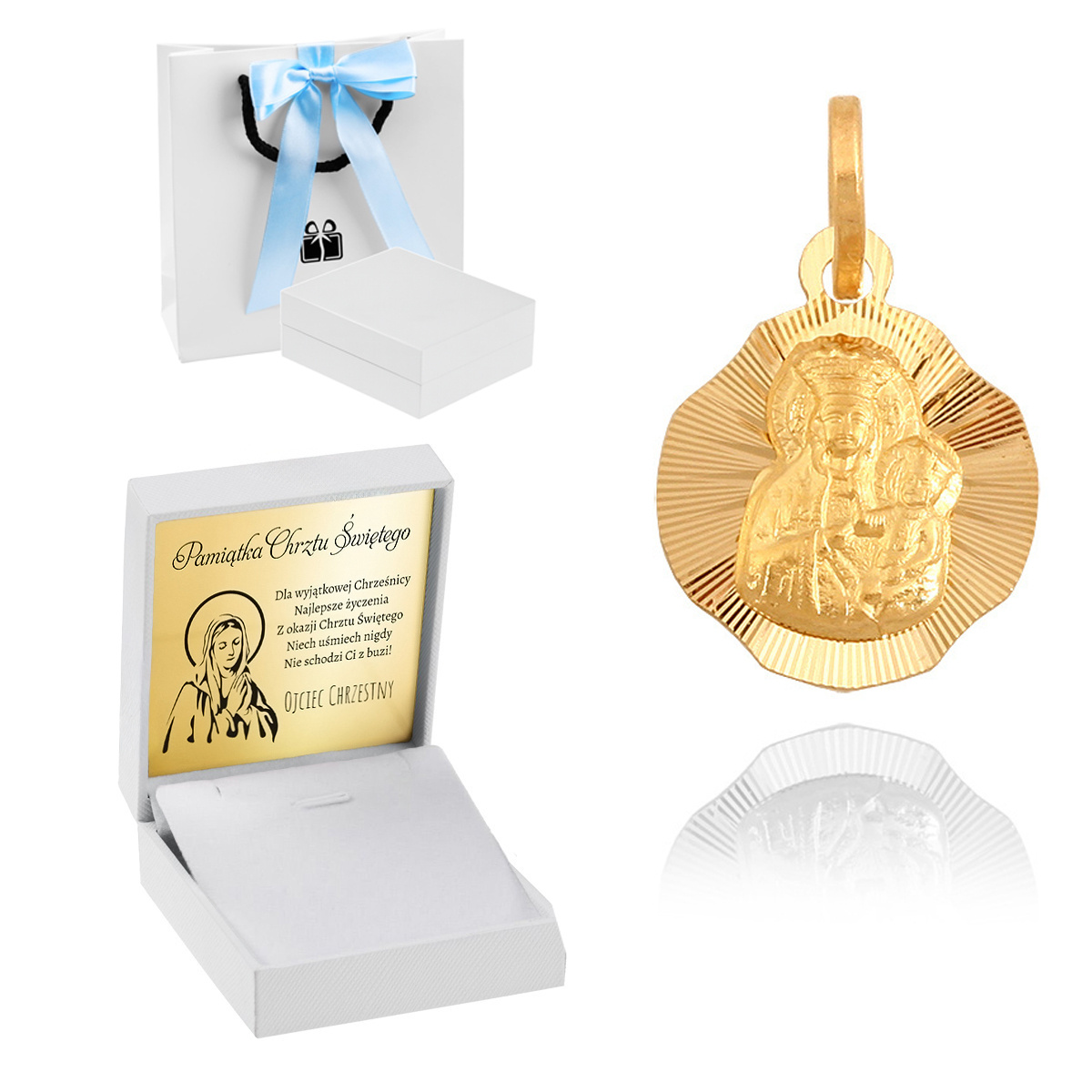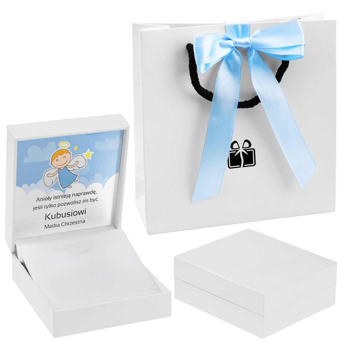 Proponujemy państwu wyjątkową, piękną zawieszkę w kształcie chłopczyka. Ozdoba została wykonana ze złota pr. 585, potwierdzonej cechą urzędu probierczego wytłoczoną na zawieszce. Wysoka jakość wykonania zawieszki zapewnia trwałość i estetyczny wygląd. Dziecięcy motyw w kształcie małego chłopca sprawia, że będzie to idealny prezent dla chłopczyka - na chrzest, roczek, czy z okazji narodzin dziecka.