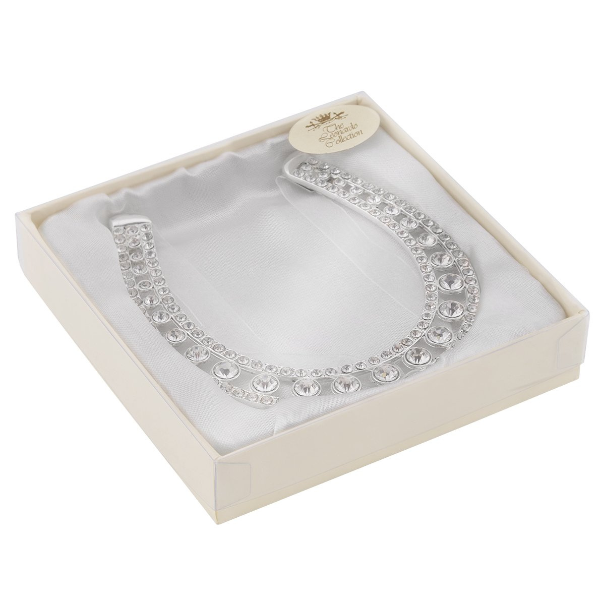 Oferujemy Państwu piękną podkowę ze stali wykończoną zdobioną cyrkoniami.