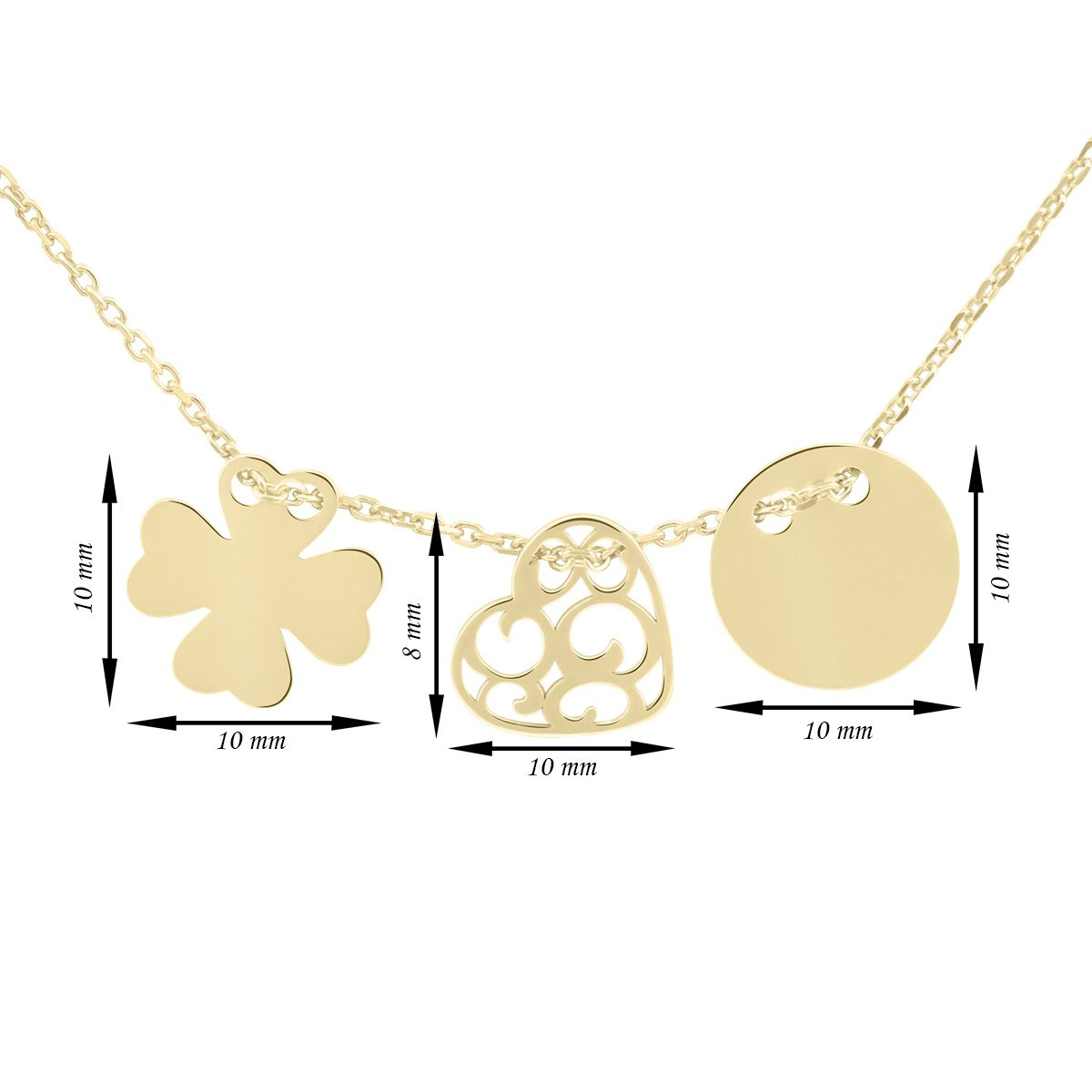 Srebrny naszyjnik pr. 925 koniczynka, serce i kółko