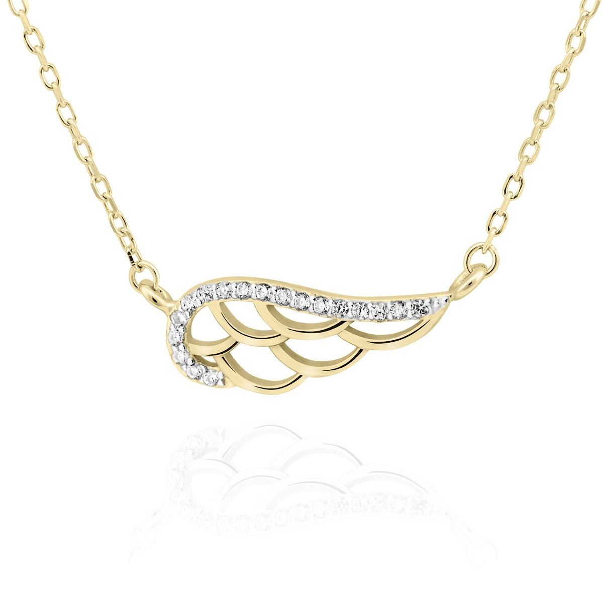 Proponujemy Państwu prześliczny naszyjnik z pozłacanego srebra pr.925 z zawieszką w kształcie skrzydła oraz cyrkoniami. Upominek wykonany jest ręcznie z niesamowitą dbałością o detale.